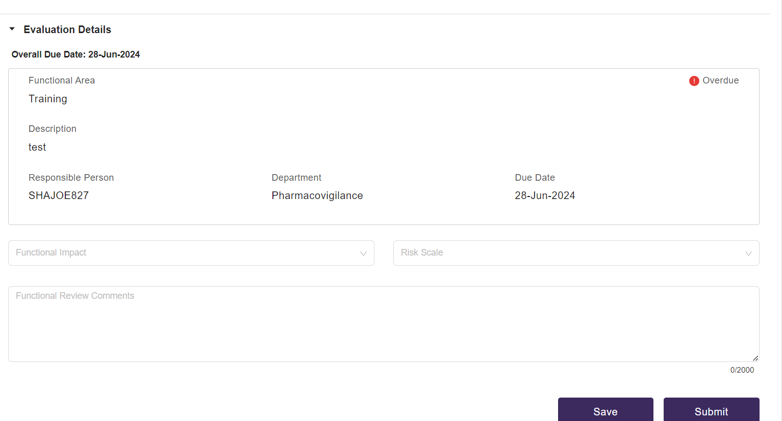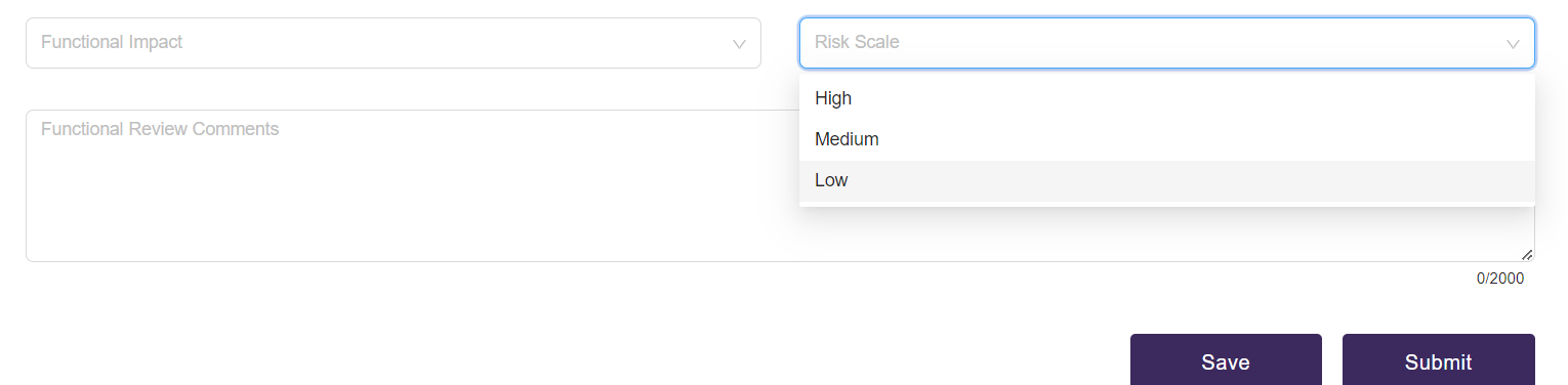 Click the "Save" button if you want to temporarily save your progress on the functional review and come back to it later. This will not submit the review to the reviewer.