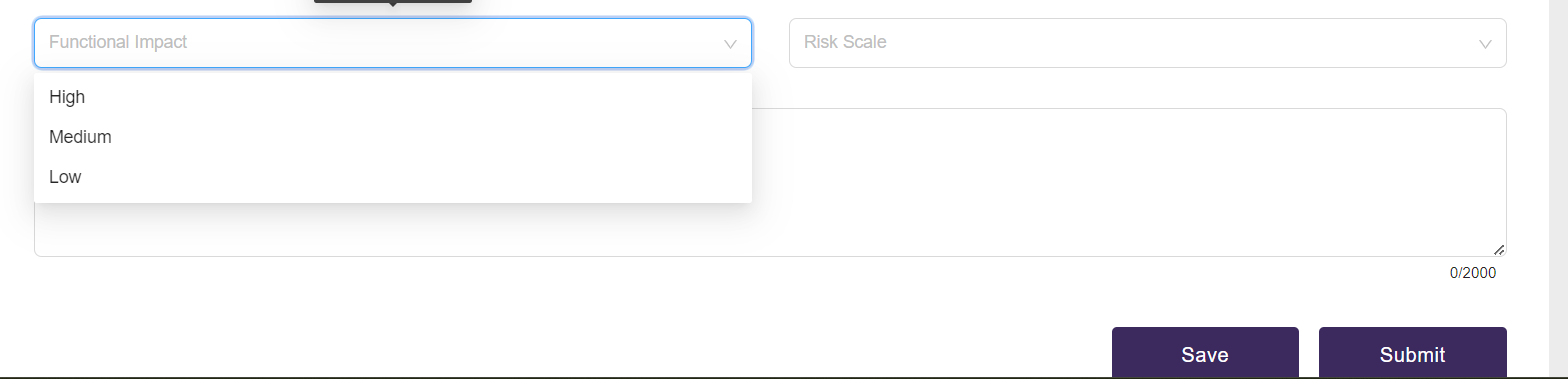 Risk Scale: Select the appropriate option from the dropdown menu that indicates the level of risk associated with the change control request.